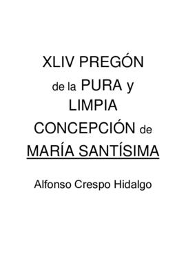 Pregón pronunciado por el sacerdote y escritor Alfonso Crespo Hidalgo en la Iglesia de San Juan el 6 de diciembre de 2025. Fue presentado por Juan Carlos Estrada.